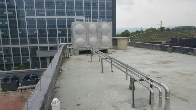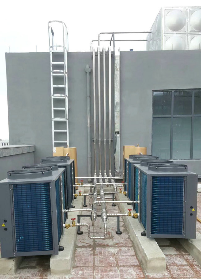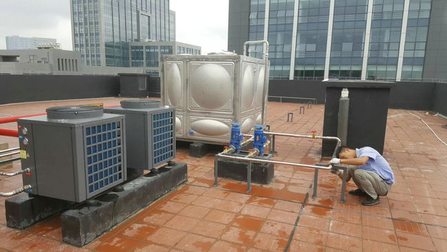 貴陽公安分局民警宿舍熱水和食堂熱水工程,食堂熱水工程:5匹空氣能兩臺+方形不銹鋼保溫水箱4.5噸。宿舍熱水工程:10匹空氣能4臺+方形不銹鋼保溫水箱18噸。