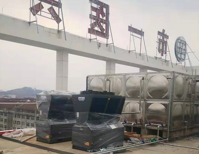 蕭山第六人民醫(yī)院空氣能+太陽能熱水系統(tǒng):采用了智恩15P空氣能熱水機(jī)兩臺(tái)+平板太陽能+20噸方形不銹鋼保溫水箱。