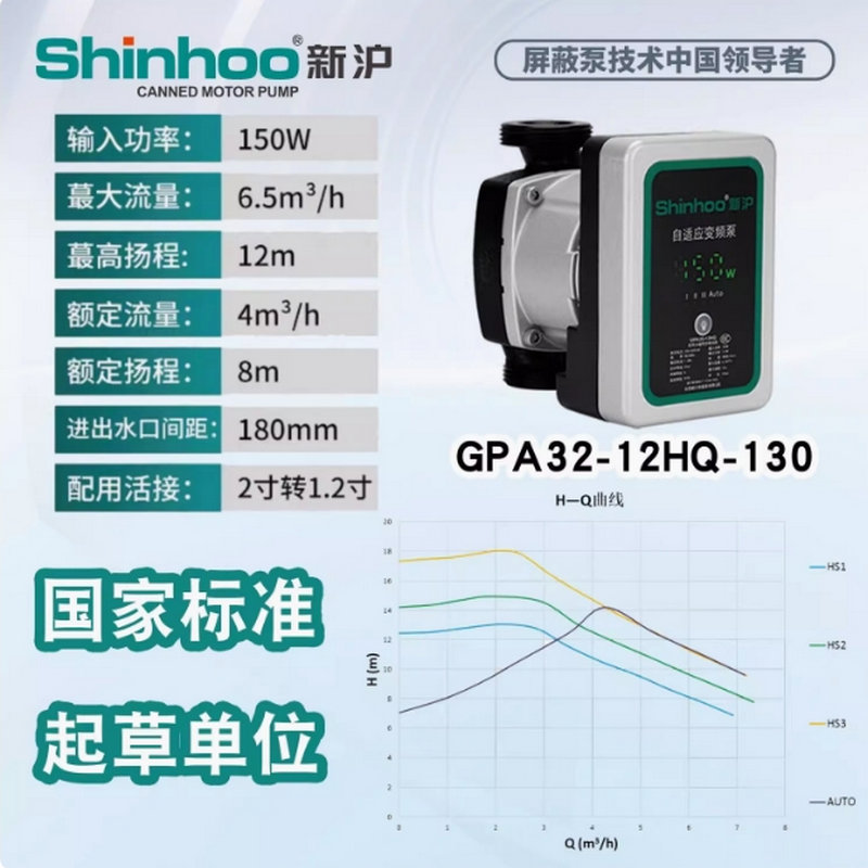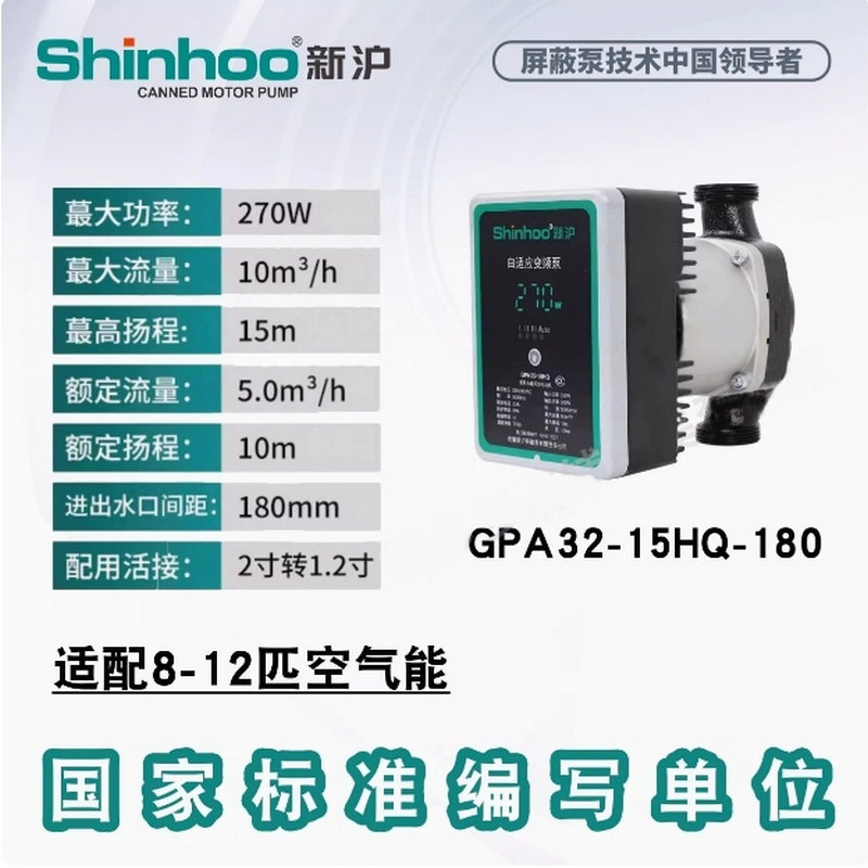 新滬永磁變頻自適應(yīng)屏蔽泵GPA新款HQ靜音地暖空氣能兩聯(lián)供循環(huán)泵