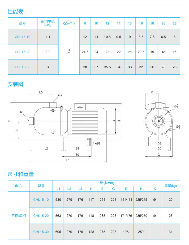 南方臥式不銹鋼多級(jí)離心泵CHL15-10/20/30