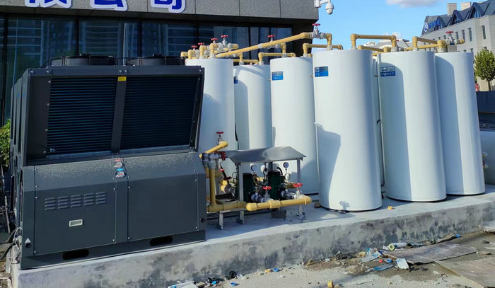 浙江溫州玉環(huán)市方艙醫(yī)院空氣能熱泵熱水工程采用了速熱承壓熱水系統(tǒng)(ZN-KFDX-100Ⅱ+455L)。主要設備有:4臺10匹智恩空氣能熱水機(ZN-KFDX-100Ⅱ)+20個455L承壓水箱(內膽304不銹鋼,外膽201不銹鋼,保溫厚度50MM)
