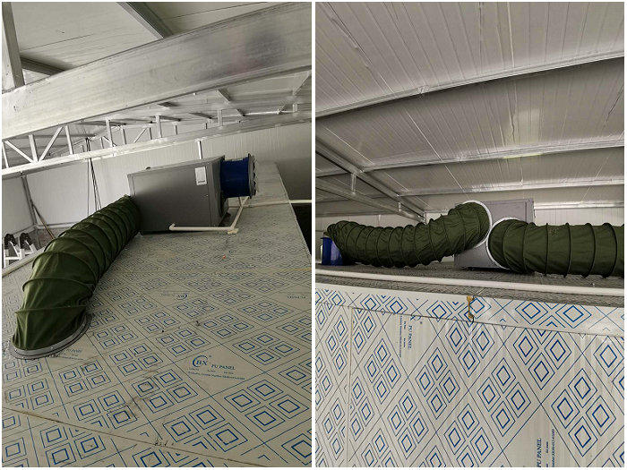 陜西咸陽(yáng)武功縣金銀花烘干系統(tǒng)(金銀花烘干機(jī)+金銀花烘干房):一體式熱泵烘干機(jī)組:15匹,烘干房:2.2*9.6*2.3。