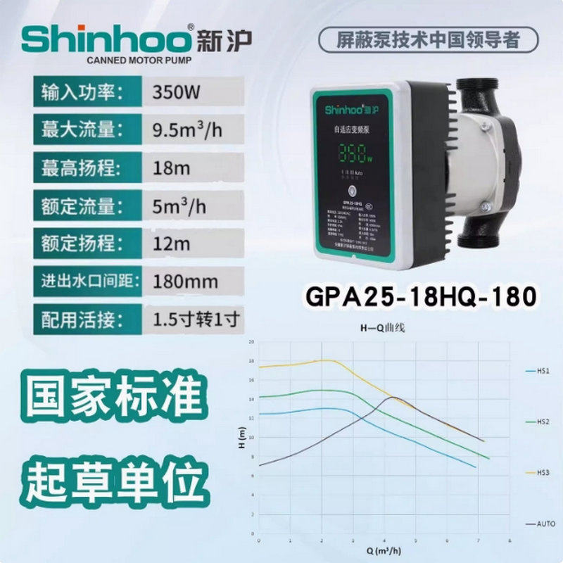 新滬永磁變頻自適應(yīng)屏蔽泵GPA新款HQ靜音地暖空氣能兩聯(lián)供循環(huán)泵