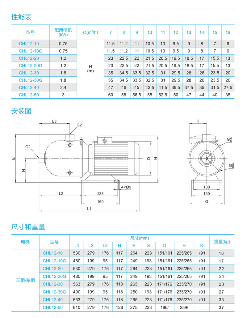 南方臥式不銹鋼多級(jí)離心泵CHL12-10/20/30/40/50