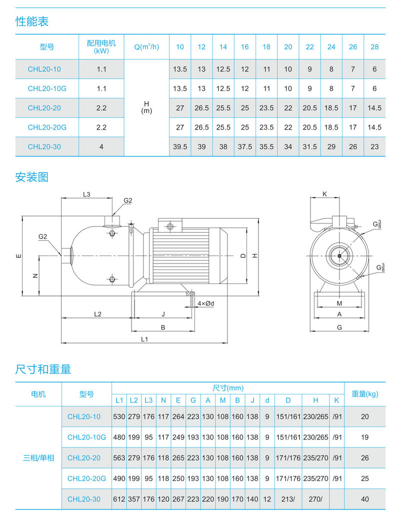 南方臥式不銹鋼多級離心泵CHL20-10/20/30